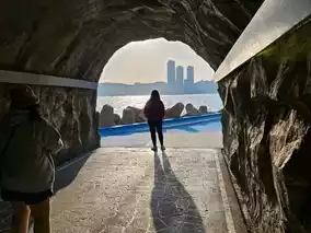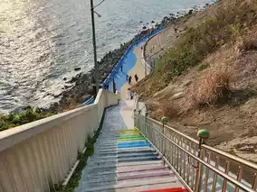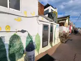 A village located by the sea, there are many restaurants, coffee shops, dessert shops, souvenir shops, and even real houses of ordinary people. There is a very popular photo spot at the end of the tunnel, where you can walk down to touch the sea.
