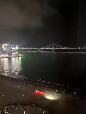After playing a lot and checking in, I took a short break and went for an evening walk on the sandy beach of Gwangalli ✨