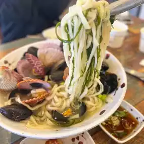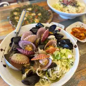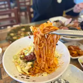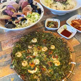 I ordered kalguksu (udon), bibim noodles, and chijimi.