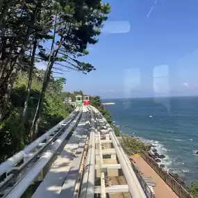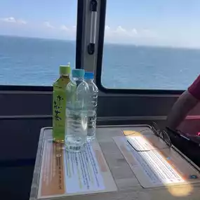 After reaching the opposite platform there is a coffee shop and two souvenir shops