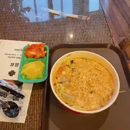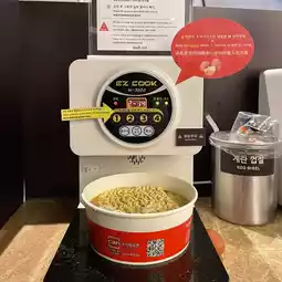 There is also a restaurant, one on the ground floor, selling Korean steamed snacks such as boiled eggs and sweet rice dessert, and the third floor has a self-service ramen restaurant, for only 10,000 won, you can add any ingredients  and side dishes, and then choose your own ramen 🍜, put it on the machine to cook yourself, and finally add cheese and eggs, you can make delicious ramen 👀 Payment is recorded through the wristband first, and then pay when returning the wristband at the door