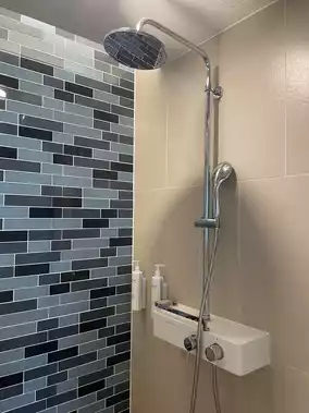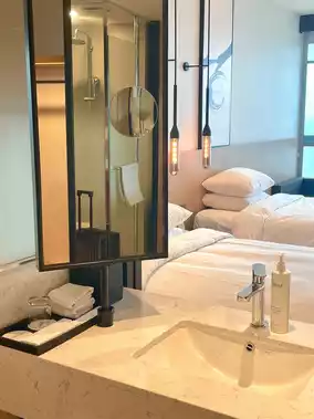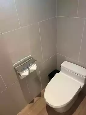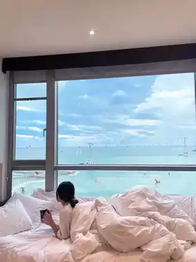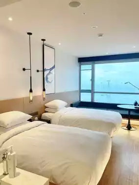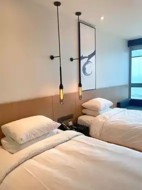 The sliding door made the space utilization really good, and the bed was really wide and the sofa was really soft. It was so good that a family of three or three people could come and sleep here. The room condition was gooood.