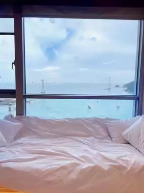 I had a hard time deciding between the king bed and twin bed in the deluxe room, but the deluxe twin room has a sofa bed attached to the bottom of the window right under the glass, so I put a blanket on the sofa and took a picture of my life while looking at the ocean view. It was a great structure. I really took a picture of my life this time too. 😆🫶🏻