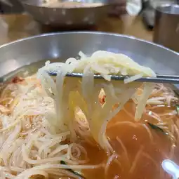 Busan-style cold noodles, milmyeon, are made with wheat flour and are softer than cold noodles, similar to Japanese ramen noodles.