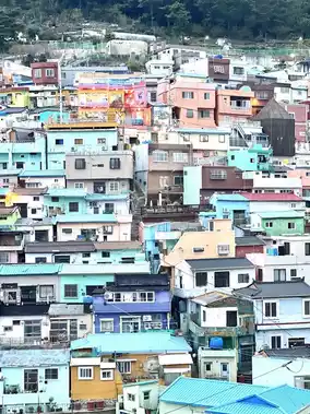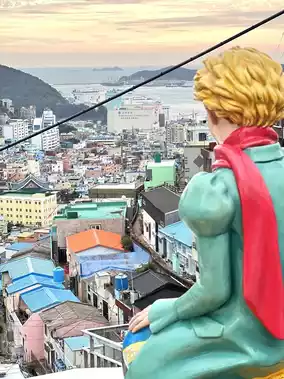 Gamcheondong Culture Village) is well-known and one of the most famous attractions in Busan. The rows of colorful houses are like fairy tales, so dreamy. You can also take pictures with the Little Prince here. Go at dusk and the sky is beautiful.