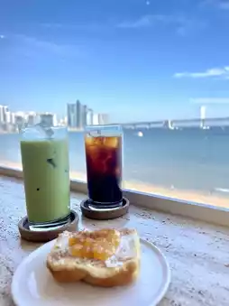 This beach is different from others. In addition to the sea, you can also see the Gwangan Bridge, which makes the scene even more beautiful😌 There are actually many coffee shops and restaurants along the way