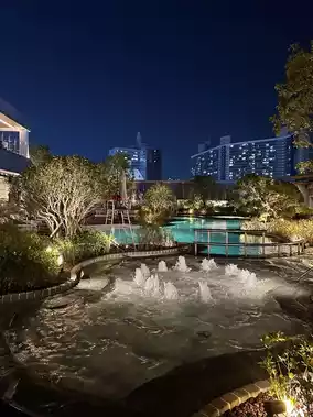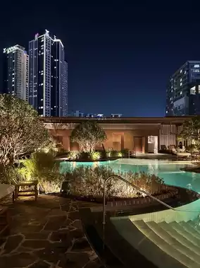 The four-season heated pool and the atmosphere at night were so good that it felt like I was in a foreign resort. 🫧
