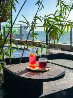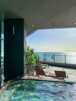 You can enjoy a cup of coffee and a seawater hot spring, so