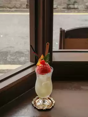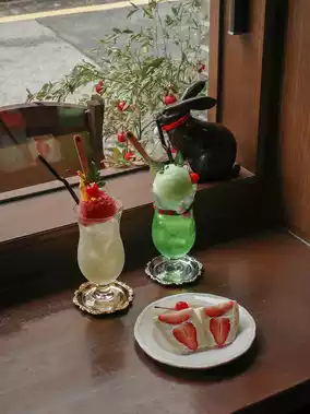 and you can see the wall view through the window, so it is a cafe with a Kitsaten feel.