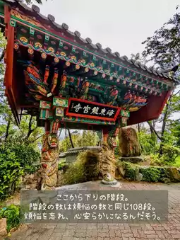 It was destroyed once during the Bunroku-Keicho War, when Toyotomi Hideyoshi invaded the Korean Peninsula. In the early 1930s, the monk Ungang rebuilt the temple, and in 1974, the monk Cheonan prayed for 100 days, and in a dream saw a white-robed Kannon Bodhisattva ascending to heaven on a dragon, so he renamed it Haedong Yonggungsa Temple. -----------------------------------------------From the entrance to the "approach," they sold oden, and they also had larvae in it... It's a great story to tell! Lol