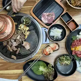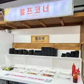 There are a wide variety of salts, wasabi, and curry powder to put on the meat, and you can take as much banchan as you want!