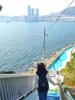 After getting off at Baekryeonsa bus stop, go through Cafe Pira and go straight until you reach the Isongdo Observatory. It's famous because the sea seen between the stairs is pretty:)