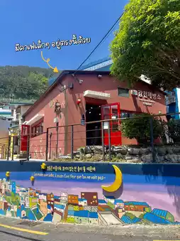 🚘We traveled by calling a taxi from the Kakao app. When we arrived, we saw a large village entrance sign. This village has many colors🌈, giving a feeling like being in Santorini. Wherever you look, there are only pastel colors. There are many painted patterns about the Little Prince on the walls🥰. There are many photo spots here. The path is quite steep because it is near the mountains⛰️