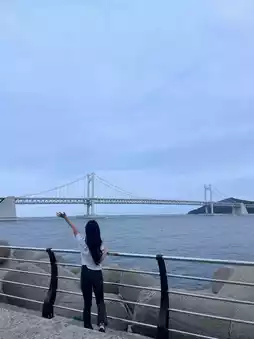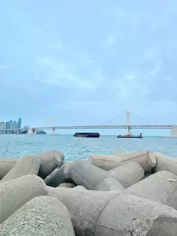 ✅ High five pose with Minrak Port Breakwater (Tetraport) + Gwangan Bridge in the background💗