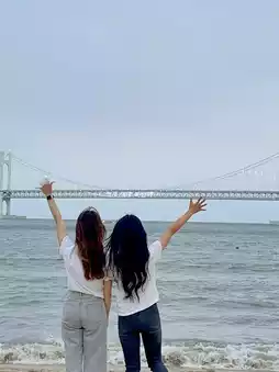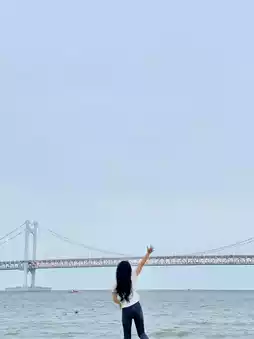 ✅ High five with Gwangalli Beach + Gwangan Bridge in the background Pose💗