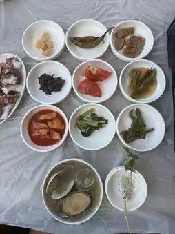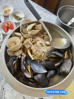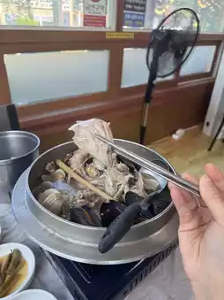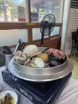 From the huge native chicken to the plump octopus, abalone, and clams in the stew pot, the portions were so generous that I ate until I burst!