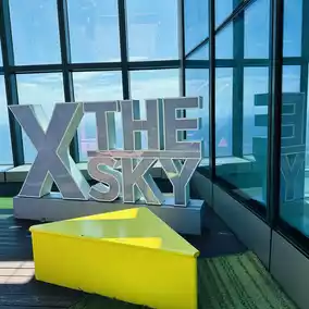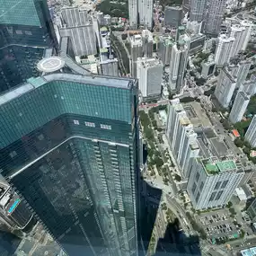๐ Take the elevator straight up to the 100th floor. The inside of the elevator is fully equipped with monitors, showing the sky on the way up and the sea on the way down.