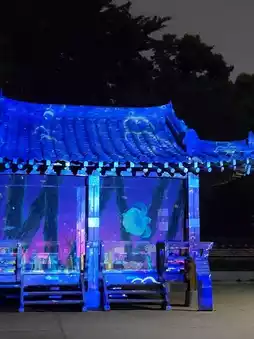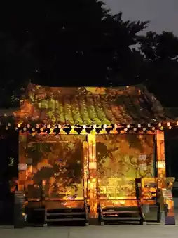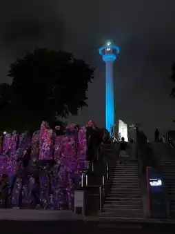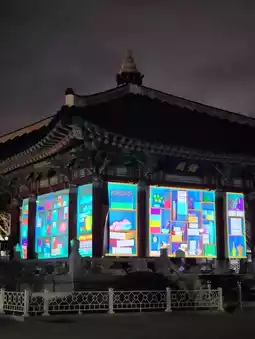 It's amazing that you can see such works for free. The media art is displayed in three main spots inside Yongdusan Park: the pavilion, the bell-ringing spot, and the outermost waterfall rock. During the summer, it starts after 8:30 PM because it needs to be completely dark. There were many claims on blogs that it only happens on weekends, but the signboard says it happens every day. I went on a Thursday, and it was on. I enjoyed the Korean-themed media art and the history it conveyed.