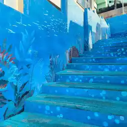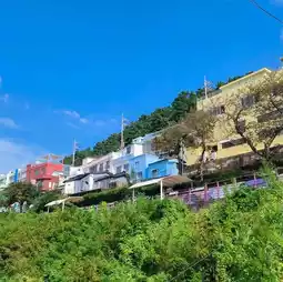 Baekseondae Culture Village is located on Yeongdo Island. The village features various cafes and dessert shops with different atmospheres, perfect for a leisurely half-day stroll. The village mainly has two pathways and a coastal trail with steps. The village is filled with murals and art installations, offering picturesque views at every turn. At the end of the village, you can walk down the rainbow stairs to the seaside and find a tunnel with art installations inside. Since the culture village is a residential area, please keep quiet and do not disturb the residents during your visit.