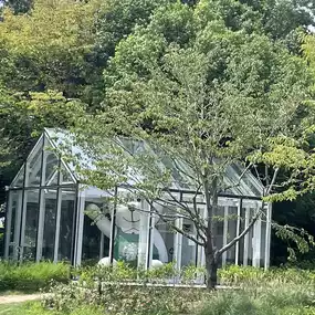 When I looked from outside, I thought, "There's a Starbucks?" but when I went over the fence, I was surprised to see such a pretty garden.γ