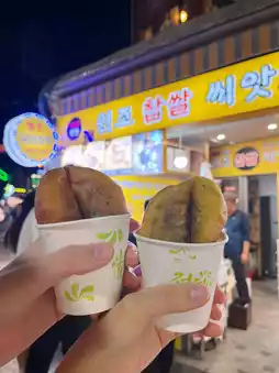 The must-try recommendations are sugar cakes, corn ice cream, and spicy rice cakes