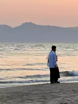 This is Dadaepo Beach, the most famous place for sunsets in Busan! It's right in front of the last stop on Subway Line 1, making it easy for people from other regions to visit! Even locals in Busan are known to go there with their families to watch the sunset, often arriving an hour or two before sunset to get a good spot! The shimmering waves reflecting the sunlight, known as 'yunsul,' are also incredibly beautiful! If you go at sunset, you'll see many newlyweds taking their wedding photos, creating a scene that looks like it's straight out of a movie! If you visit Busan, make sure to stop by!
