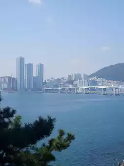 #Get a discount without relying on luck Huinnyeoul Culture Villag has a lot of photo spots. No matter where you take a photo, it's beautiful. But what I like the most is the way down the stairs to the back with a sea view. You can see buildings, boats, and mountains. I like it very much. Many people come to take photos here. Sometimes you have to wait in line. On the side, there is a pavilion to sit and relax, enjoy the sea view, cool breeze, blue sky, and blue sea. It's very beautiful. This spot is near before reaching the tunnel. Walk straight from the bus stop. It's not hard to find. #huinnyeoul #koreatravel #busan