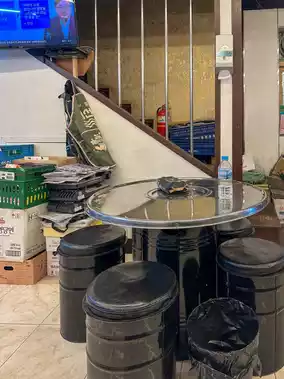 The cozy interior features round tables with burners, reminiscent of a street food stall, making it a perfect spot for drinkers. The red, thick octopus hot pot includes glass noodles, shrimp, spinach, and other ingredients, making for a healthy and delicious meal.