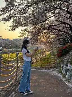 The yellow rape blossoms and pink cherry blossoms blended together to create a truly beautiful landscape. It was amazing to be able to enjoy two flowers in one place like this! It was a place where you could take a great picture no matter where you took it.