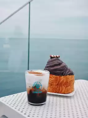 The store offers a variety of coffee, bread and desserts. I ordered a cup of the signature CORAL sparkling drink. The visual effect is beautiful, but the taste is quite ordinary. It is the type that looks good in photos (laughs). But seriously, the point of coming here is not the coffee, but to simply look at the sea, relax, and enjoy a moment of tranquility. 🌊