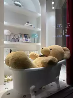 The landmark is a bear taking a bath displayed in the shop window 🐻🩷