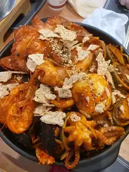 Fresh seafood stew is the signature menu! It's filled with various seafood such as large scallops, octopus, and shrimp. You can adjust the spiciness to your taste!