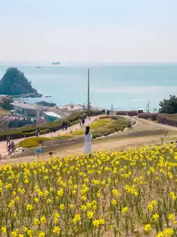 If you go to see the Oryukdo daffodils, I recommend visiting early in the morning because there are a lot of people at this time!