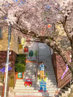 #spring travel #cherry blossoms #cherry blossom attractions #cherry blossom travel #Busan cherry blossoms #cherry blossom viewing #Busan cherry blossom attractions #Busan travel destinations #Busan places to visit #Dakbatgol Mural Village #Sanbokdo road cherry blossoms