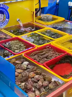 🍣 Live Seafood Selection – Choose from a huge variety of live fish, shellfish, crabs, and octopus, then have it cooked on the spot!