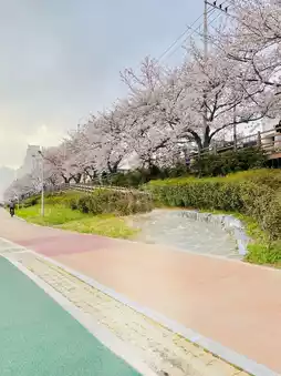 When you walk along the road lined with cherry blossoms, the sky and the ground feel like one. The cherry blossom trees lined up along the riverside and the sound of the water flowing underneath create perfect harmony, and it's the perfect place to take pictures! 📸