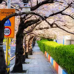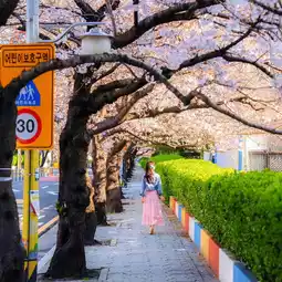 📍 Namcheon-dong Cherry Blossom Road (남천동 벚꽃길) is located in Suyeong District, Busan, South Korea. It is a quiet path surrounded by cherry blossoms. The cherry trees on both sides of the road bloom collectively in spring, turning the road into a romantic pink tunnel. The Guang'an Bridge in the distance and the blue sea view set off against each other, forming a beautiful picture. This place is not as crowded and noisy as those popular tourist attractions, so you can enjoy your own romantic time. The cherry blossoms at night are so beautiful under the lights that it seems unreal, and the girls' hearts are bursting!