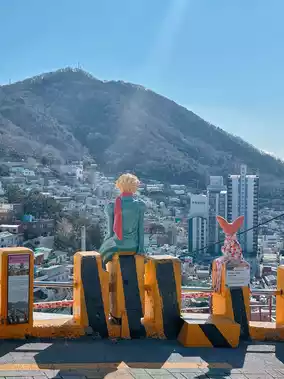The Little Prince photo spot at Gancheon Cultural Village in Busan, Korea is really famous and is a must-see attraction! The most attractive thing here are the sculptures of the little prince and fox, sitting on a hillside with colorful huts on their backs. Many people come here to take pictures, especially at sunset, when the sun shines down and the whole scene is more romantic.