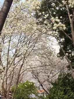 In addition to cherry blossoms, white magnolias and Korean forsythia, they complement each other. There is also a whole row of foodcars parked in the driveway where you can buy snacks to fill your stomach.
