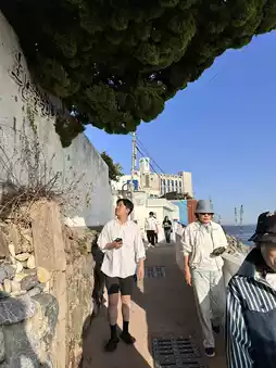 There are many cute cafes and prop shops along the blue sea road,