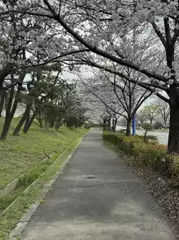 The Nakdong River riverside path next to Daejeo Ecological Park is especially good for enjoying cherry blossoms, as they spread out over a wide area. You can also see a small tulip field here!