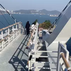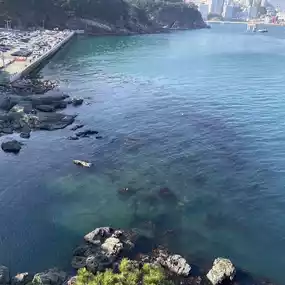 After exiting the Songdo Cable Car station, it is highly recommended to take a detour to the "Songdo Yonggung Skywalk." This elevated walkway stretches along the coastline and is designed with a dragon theme, winding above the sea. It is one of Busan's most distinctive scenic routes.