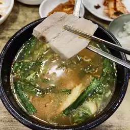 The soup here is more like the pepper pork belly hotpot style, with a distinct pepper aroma, and tastes very warm to the stomach. The ingredients are also generous, with plenty of pork slices, blood sausage and offal. It is recommended to pour white rice into the soup and eat it together, making it Korean soup rice. It is really delicious after absorbing the soup.