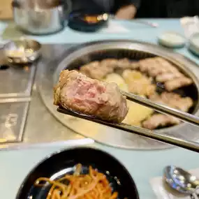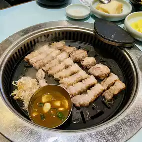 The restaurant offers professional table-side grilling service. Before grilling, the staff uses pork fat and dried shrimp to enhance the aroma, creating a mouthwatering scent. The meat is grilled to perfection—crispy on the outside, tender on the inside, and completely free of any unpleasant odor, making it an absolute delight to eat.