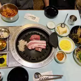 This Korean BBQ restaurant is absolutely outstanding, offering fresh and incredibly delicious meat! The price for pork neck and pork belly is 14,000 KRW per portion, with a minimum order of three portions for two people. The serving size is just right—not too much, but enough to satisfy.