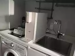 Upon entering the room, it was very clean and cozy. The size was just right for a double room, with enough space to open two suitcases. There’s also a spacious wardrobe. It seems the room was previously part of a small family residence, as it still has kitchen and laundry facilities. While these are not usable for short stays, removing them could make the space even larger. The standout feature is the in-room water dispenser, which is incredibly convenient, offering both hot and cold water. The bathroom amenities, such as shower gel, are also quite good. Overall, this is a highly recommended budget-friendly accommodation with a great location.