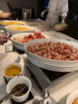 - Freshly baked bread area + salad and fruit are a plus