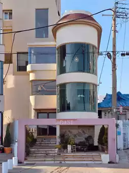 Cafe Base (카페베이스), you can take so many photos that your memory card will fill up! The whole building has 4 floors, each with a different style. The top floor has a balcony with glass windows and an unbeatable sea view. Every corner is so impressive that it looks like a painting no matter how you take pictures.