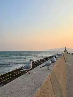 In the early morning, the sun shines on the calm sea, suitable for walking or jogging π