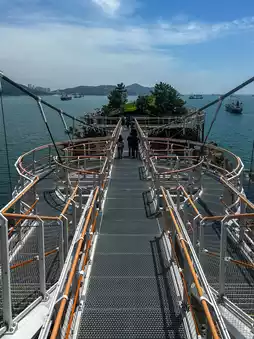 I took a cable car over the sea to Matsushima in Busan, which can be reached by bus from Nampo. There are cable cars with a see-through floor and those with a see-through floor, and the prices are slightly different. I chose the see-through type because I was there. If you choose the crystal type, the floor is see-through. You can see the scenery from almost the entire surface, so you can see the high-speed apartments moving away and the islands approaching very clearly. There is also something like an observation deck at the cable car's arrival point, and you can enjoy a spectacular view from there as well☺️